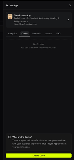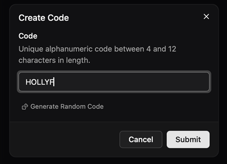 7. Go to the “Codes” tab on your dashboard and create a new code.